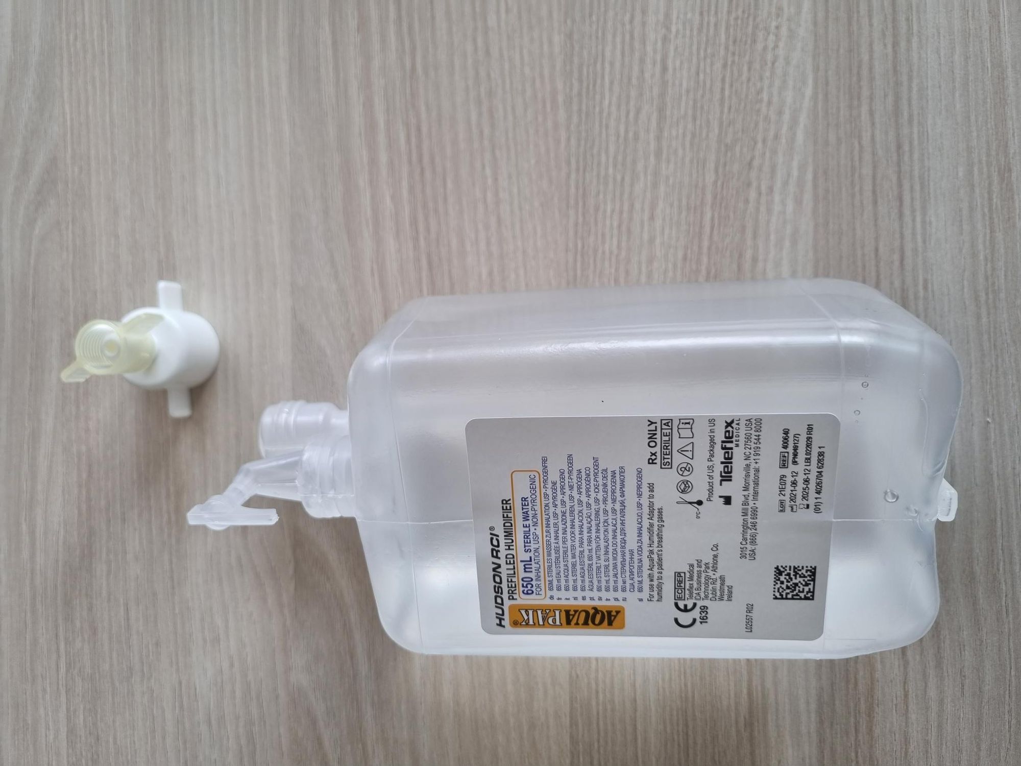 10 x Sterilwasser Aquapak 650ml im geschlossenen System, inkl. O2-Adapter zum Anschluss an Sauerstoffgeräte, steriles Wasser zur Inhalation in der Sauerstofftherapie, unser Respiflo Nachfolgeprodukt