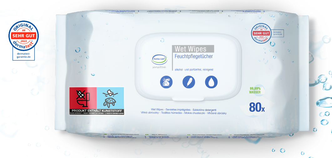 12 x Forma-care sensitive Wet Wipes Die Haut ist das größte Organ des menschlichen Körpers. Somit sollten wir auch achtsam mit ihr umgehen! Unsere weichen Feuchtpflegetücher sind hautfreundlich und extra konzipiert für empfindliche Haut. Die forma-care-Feuchtpflegetücher sorgen für eine ideale Pflege empfindlicher Haut. Wir bieten Ihnen dermatologisch getestete Wet Wipes an, die vielseitig einsetzbar sind! Vorteile der Wet Wipes Feuchtpflegetücher: Sanfte Reinigung: Unsere Tücher sind für besonders empfindliche Haut geeignet und sind dermatologisch getestet. Die weichen Wet-Wipes geben bei der Verwendung pflegende und reinigende Substanzen ab. Alkohol- und parfümfrei: Alkohol und Parfüme reizen Ihre Haut, deshalb wurden die Pflegetücher von Forma-care bewusst ohne Alkohol- und Parfümstoffe hergestellt. Dies ist besonders für empfindliche Hauttypen von Bedeutung. Sie sind ebenfalls ideal für Personen mit Allergien oder geruchssensible Menschen. Wiederverschließbar: Dank des wiederverschließbaren Deckels trocknen die Feuchtpflegetücher nicht aus und haben eine lange Verwendungsdauer. Spezielle Faltung: Die Hersteller haben diese Tücher so konzipiert, dass die spezielle Faltung Ihnen die Entnahme Blatt für Blatt ermöglicht. Vielseitig anwendbar: Die Forma-care sensitive Feuchtpflegetücher sind in vielen Bereichen anwendbar. Sie dienen als feuchtes Toilettenpapier für sich selbst oder zur Auffrischung zwischendurch an warmen Sommertagen. Allem voran eignen sich die Wet Wipes hervorragend im Bereich der Pflege von Ihren Angehörigen oder pflegebedürftigen Patienten. Bitte lesen Sie vor Gebrauch der Wet Wipes Feuchtpflegetücher die Anweisungen des Herstellers durch. Änderungen vorbehalten. Abbildungen können vom Original abweichen.