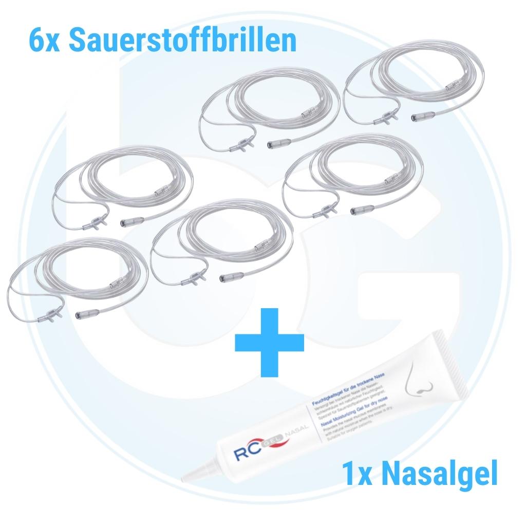 6x Sauerstoffbrille 2,10m lang, für Erwachsene inkl. Nasalgel (P=20ml)
