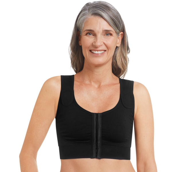 Der Kompressions-BH Sina ist nahtlos und direkt nach einer Operation geeignet. Er ist besonders weich und bequem und hat einen Vorderverschluss. Er wird ohne Kompressionsgürtel geliefert. Dieser kann bei Bedarf dazu bestellt werden, um eine optimale Kompression zu ermöglichen.Verstellbare, breite, verstärkte Träger mit Klettverschlüssen für eine einfache Anpassung und TragekomfortEingearbeitete nahtlose Taschen um eine Erstprothese sicher am Platz zu haltenPräsise Passform dank nathloser Rundstricktechnologie und visueller GrößeneinteilungHaken- und Ösenverschluss an der Vorderseite für einen leichteren Zugang zum Operationsgebiet und einfaches AnziehenImmobilisierung und Stabilisierung der operierten Brust (spezielle Strickzonen im unteren Cupbereich)Vliesband auf der Rückseite ermöglicht sicheres Positionieren des Kompressionsgürtels (nicht enthalten!)Wichtiger Hinweis:Der Kompressions-BH Sina ist klinisch vorbereitet: Er wurde gewaschen und desinfiziert und wird in einem „peel“-Beutel geliefert. Das Öffnen dieses Beutels schließt einen Widerruf aus! Dies bitte beachten!Bei Fragen sprechen Sie uns gern an.Geeignet für:BrustrekonstruktionBrustverkleinerungBrustvergrößerungBruststraffungOnkoplastische BrustoperationenMastektomieDrucklevel:Mittleres Drucklevel (Kompressionszonen im unteren Cupbereich, im Seiten- und Rückenbereich und vollflächig auf der Brust)Material:98% Polyamid2% ElasthanGröße (Unterbrustweite):70 75 – 120 125Lieferumfang:1 Stück Amoena Sina Post-OP Kompressions-BH in gewählter Größe und Farbe
