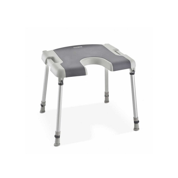 In die weiche Soft-Touch-Sitzfläche des Duschhocker Sorrento von Aquatec ist ein praktischer Hygieneausschnitt integriert.   Er lässt sich platzsparend zusammenfalten und passt sich aufgebaut den unterschiedlichsten Körpergrößen an. mit Hygieneausschnitt höhenverstellbar ohne Werkzeug Maße: Sitz (BxT): 40 x 40 cm Sitzhöhe: 46 – 61 cm Gesamt (BxT): 52 x 43 cm Hygieneausschnitt (BxT): 14 x 17 cm Belastbarkeit: 135 kg Gewicht: 5,5 kg Farbe: weiß grau Lieferumfang: 1 Aquatec Sorrento Duschhocker mit Hygieneausschnitt