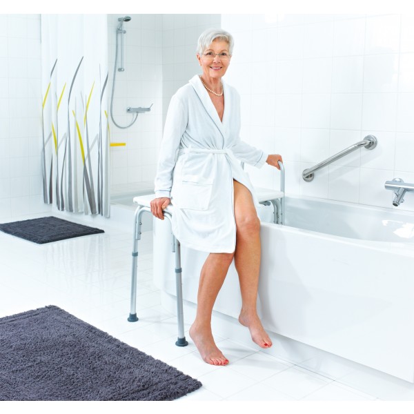 RIDDER Badewannen-Transferbank Setzen, sicher Verschieben und los geht der eigenständige Badespaß Ergonomisch geformte Sitzfläche 700 x 410 mm und Rückenlehne 400 x 230 mm aus pflegeleichtem Kunststoff (PE-HD) , für sicheren Sitz auf durchlüftender Fläche Sitzhöhe verstellbar von 530 – 630 mm Farbe: weiss Die Vorteile der Badewannen-Transferbank Nehmen Sie Platz! Gestell und seitlicher Haltegriff aus eloxiertem Aluminiumrohr, kein Rosten möglich Extrem sicherer Ein- und Ausstieg durch gefahrenloses und leichtes Rutschen in und aus der Wanne Ablauföffnungen zum kontrollierten Ablauf des Wassers und einer hygienischen Trocknung Bequeme und sichere Rückenlehne, für eine sichere und entspannte Sitzposition Rutschfeste und kantenlose Sitzfläche In neutralem Weiss = passend zu den gängigsten Sanitärobjekten Große und rutschsichere Füße für maximale Standsicherheit – auch auf feuchten Böden – Füße im Wanneninneren mit Saugnapffunktion gegen Verrutschen Frei von scharfkantigen Bauteilen Hochwertige Verarbeitung, lange Lebensdauer Einfache Montage mit ausführlicher Anleitung Mit handelsüblichen Reinigungs- und Desinfektionsmitteln einfach zu reinigen Durch TÜV Rheinland –LGA geprüft auf Schadstoffe Durch TÜV Rheinland – LGA getestet und permanent überwacht auf Einhaltung der Sicherheitsanforderungen, geprüfte Sicherheit bis 150 kg Bitte lesen Sie vor Gebrauch dieser RIDDER SAM Badewannen-Transferbank Einstiegshilfe aufmerksam die Bedienungsanleitung und halten Sie sich an die Anweisungen des Herstellers. Änderungen vorbehalten. Abbildungen können vom Original abweichen.