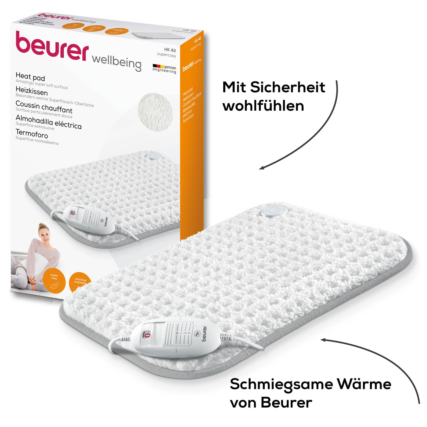 Superflauschig und wohlig warm! Das Heizkissen mit Schnellheizung und atmungsaktiver Oberfläche heizt Ihnen so richtig ein. Atmungsaktiv Anschmiegsam und hautsympathisch Schnellheizung 3 Temperaturstufen Beurer Sicherheitssystem (BSS) Abschaltautomatik nach ca. 90 Min. Präzise elektronische Temperaturregelung Beleuchtete Temperaturstufen Abnehmbarer Schalter Superflausch-Heizkörper Heizkörper: Maschinenwäsche bei 30 °C Oeko-Tex® Standard 100 (06.0.43510 Hohenstein HTTI)
