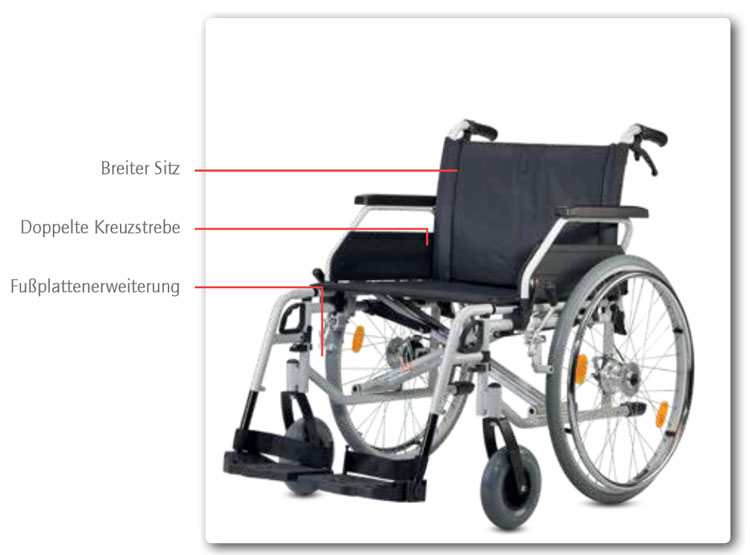 Bischoff & Bischoff S-Eco 300 XL Rollstuhl, stabile Ausstattung ist hier Standard, bis 170 kg (SB 52-55-58cm)