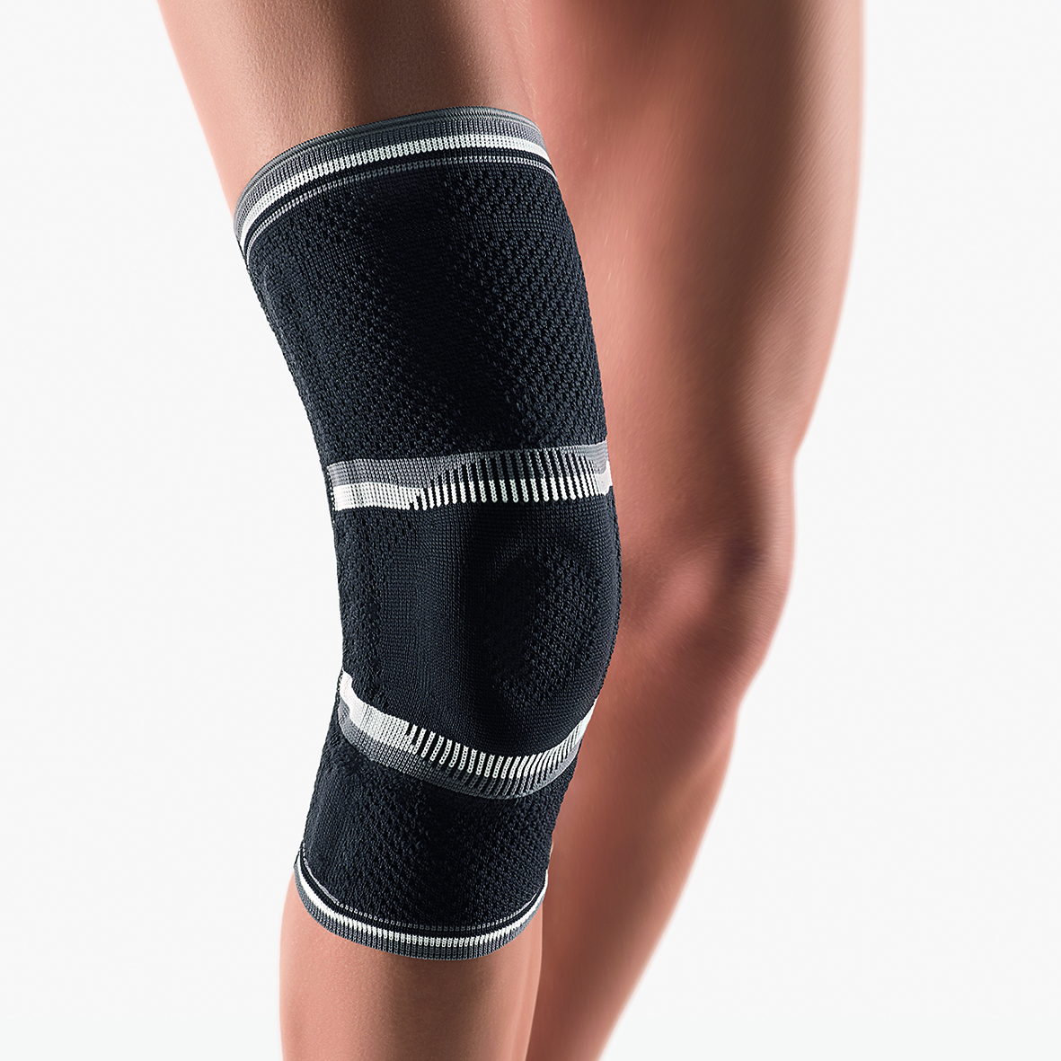Bort StabiloGen latexfrei Kniebandage Bandage aus latexfreiem Gestrick kräftige Zweizug Qualität je einen Stab pro Seite mit eingearbeiteter Silikonpelotte Innovatives Plus-Größen-System Kompressions-Klasse II Indikation Gonarthrose, Gelenkerguss und Schwellung, Arthritis, postoperative Reizzustände, Bandschwäche. KontraindikationNicht anwenden bei arteriellen Verschlusserkrankungen (AVK) und chronisch venöser Insuffizienz (CVI). Die Vorteile der Bort StabiloGen latexfrei Kniebandage Kniebandagen unterstützen geschädigte Gewebestrukturen (Gelenk, Bänder, Kapseln, Knorpel). Gleichzeitig hilft die Bandage, Fehlbewegungen weitgehend zu vermeiden. Ein weiterer Vorteil ist, dass die Kniescheibe durch die Pelotte im normalen Bewegungsablauf geführt wird.. Die Kompression unterstützt dabei die Haltefunktion der Bänder und entlastet so das Gelenk. Die Pelotte bewirkt einen Massageeffekt, der Schwellungsneigungen reduziert oder bestehende Schwellungen rascher rückbilden hilft. Bitte beachten Sie vor Gebrauch dieses Produktes aufmerksam die Anweisungen des Herstellers. Änderungen vorbehalten. Abbildungen können vom Original abweichen. Abbildungen von: ©BORT GmbH