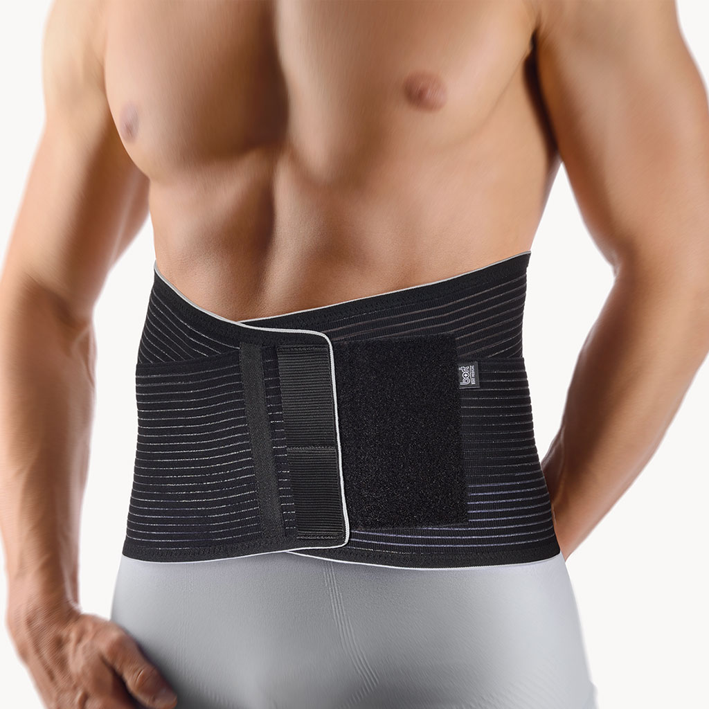 Bort VarioBasic Rückenbandage leichtes Anlegen durch Handschlaufen elastische Kreuzzügel Höhe: Vorne: 17 cm , Hinten : 26 cm incl. vier anatomisch vorgeformte Stützstäbe mit Klettverschluss Indikation: LWS-Syndrom, Lumbalgien, Lumboischialgien, statisch-muskuläre Insuffizienzen, Reizzustände des Ilio-Sacral-Gelenkes. Kontraindikation: Bestehende Allergien oder bekannte Überempfindlichkeit gegen einen oder mehrere der verwendeten Materialien. Erkrankungen der Haut im versorgten Körperabschnitt. Die Vorteile der Bort VarioBasic Rückenbandage Rückenbandagen unterstützen geschädigte Gewebestrukturen (Knochen, Bänder und Knorpel). elastische Kreuzzügel ermöglichen einen hohen Tragekomfort. Höhe vorne:17cm , Hinten: 26 cm Die Kompression unterstützt dabei die Haltefunktion der Bänder und entlastet so die Wirbel. Durch die Handschlaufen ist die Bandage leicht anzulegen. zusätzliche Stabilisierung durch 4 anatomisch vorgeformte Stäbe Bitte beachten Sie vor Gebrauch dieses Produktes aufmerksam die Anweisungen des Herstellers. Änderungen vorbehalten. Abbildungen können vom Original abweichen. Abbildungen von: ©BORT GmbH