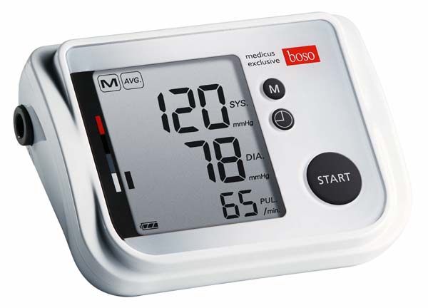 boso medicus Exclusive Oberarmmessung auf höchstem Niveau boso medicus exclusive ist so individuell wie die Gesundheit: Wie kein anderes boso Gerät lässt es sich auf die persönlichen Bedürfnisse einstellen und bietet zahlreiche Statistikfunktionen für eine optimale Beurteilung der Blutdruckwerte. Und das alles so einfach und benutzerfreundlich, wie man es von boso gewohnt ist: die große Anzeige und die zuschaltbare Sprachausgabe machen die Blutdruckmessung besonders einfach und komfortabel – nicht nur für ältere oder sehbehinderte Menschen. Sehr präzises Blutdruckmessen am Oberarm klinisch validiert Intelligente Aufpumpautomatik für eine Messung ohne Nachpumpen Bewegungssensor verhindert falsche Messergebnisse Sehr große und kontrastreiche Anzeige Zuschaltbare Sprachausgabe (5-sprachig) mit Lautstärkeregelung Speicher für 90 Messwerte mit Datum und Uhrzeit – Monatsüberblick bei drei Messungen/ Tag Zusätzlicher Gastmodus Arrhythmie-Erkennung zur Anzeige von Herzrhythmusstörungen Mittelwertanzeige zur differenzierten Blutdruckbeurteilung im Tagesverlauf (vormittags / nachmittags) Blutdruckbewertungsskala nach WHO Tri-Check-Funktion – automatische, dreimalige serielle Messung und Mittelwertbildung Optische Anzeige von Bewegungsstörungen während der Messung Manschette für Armumfang (optional Kinder / Standard / Starke Arme) Hochwertiges Etui und Batterien inklusive 3 Jahre Qualitäts-Garantie Die Vorteile des boso medicus Exclusive boso medicus exclusive ist so individuell wie die Gesundheit: Wie kein anderes boso Gerät lässt es sich auf die persönlichen Bedürfnisse einstellen und bietet zahlreiche Statistikfunktionen für eine optimale Beurteilung der Blutdruckwerte. Überzeugend in jeder Beziehung: das elegante Design, die hochwertige Verarbeitung und ein Funktionsumfang, der keine Wünsche offen lässt. Und das alles so einfach und benutzerfreundlich, wie Sie es von boso gewohnt sind: Die große Anzeige und die zuschaltbare Sprachausgabe machen die Blutdruckmessung besonders einfach und komfortabel – nicht nur für ältere oder sehbehinderte Menschen. Optional erhältlich: Manschetten in verschiedenen Größen: Kinder | Armumfang 16 – 22 cm Standard | Armumfang 22 – 32 cm Starke Arme | Armumfang 32 – 48 cm Netzgerät für einen batteriefreien Betrieb Bitte lesen Sie vor Gebrauch dieses boso medicus exclusive aufmerksam die Bedienungsanleitung und halten Sie sich an die Anweisungen des Herstellers. Änderungen vorbehalten. Abbildungen können vom Original abweichen.