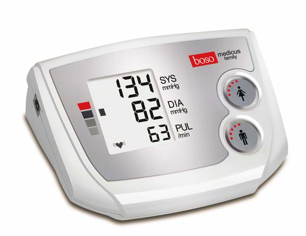 boso medicus Family Das Familien-Blutdruckmessgerät mit zwei getrennten Speicher Dieses Modell ist sehr beliebt, da es von der Stiftung Warentest in 2008 als Testsieger ausgezeichnet wurde. Mit zwei getrennten Speichern (je 30 Messungen) ist es ein ideales Partnergerät, zusätzlich steht auch ein Gastmodus zur Verfügung. Darüber hinaus ermöglicht die Auswertung des Blutdrucks eine genaue Beurteilung der Messwerte. Passend für verschiedene Anwender, ist dieses Gerät mit einer Universalmanschette für Armumfänge 22 bis 42 cm ausgestattet. Blutdruck-Bewertungsskala nach WHO mit sicherer Einknopfbedienung Netzteil-Anschlussmöglichkeit für batteriefreien Betrieb Mit Reiseetui, Batterien und Blutdruckpass Arrhythmie-Erkennung zeigt Herz-Rhytmus-Störungen an Mittelwertanzeige für die bessere Blutdruck-Kontrolle XL-Manschette anschließbar 3 Jahre Herstellergarantie Die Vorteile des boso medicus Family Das Familiengerät mit zwei Speicherplätzen für jeweils 30 Messwerte verfügt ebenfalls noch über einen weiteren Gastmodus Mit Universalmanschette für Armumfänge mit erweitertem Messbereich von 22 bis 42 cm Die intelligente Aufpumpautomatik sorgt für sanftes Messen ohne Nachpumpen Mit Blutdruckbewertungsskala nach WHO Bitte lesen Sie vor Gebrauch dieses Boso Oberarmblutdruckmessgerät Medicus Family aufmerksam die Bedienungsanleitung und halten Sie sich an die Anweisungen des Herstellers. Änderungen vorbehalten. Abbildungen können vom Original abweichen.