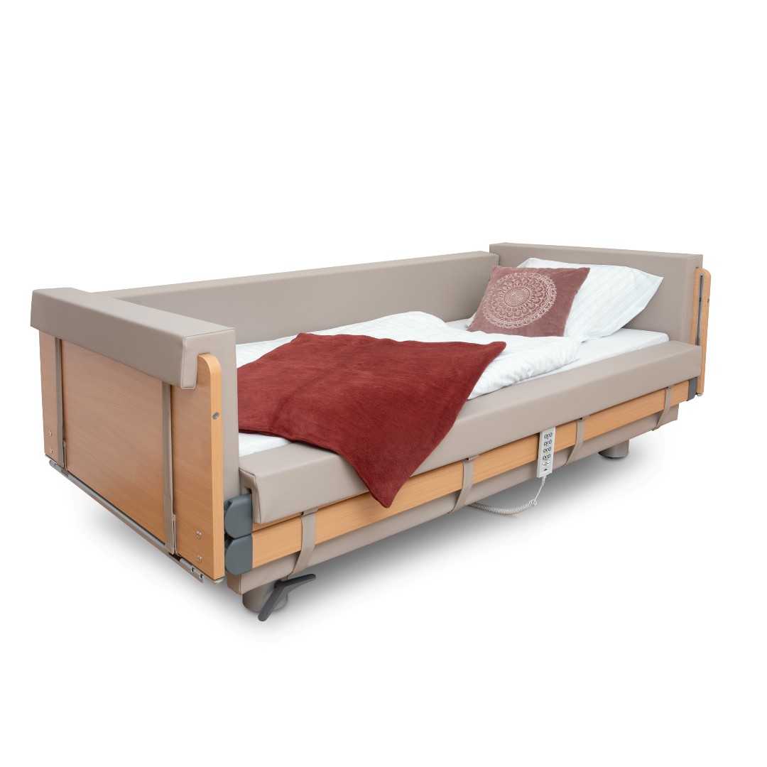 Regia Gardo Protect Pflegebett von Burmeier inkl. Matratze Das Regia Gardo Pflegebett von Burmeier ist die optimale Wahl für Menschen, die von Erkrankungen wie Chorea Huntington, Multiple Sklerose oder Epilepsie betroffen sind. Dieses Spezialbett wurde speziell entwickelt, um den Herausforderungen unkontrollierter Bewegungen gerecht zu werden Es bietet dabei maximalen Schutz und Komfort. Die Höhenverstellung von 26 bis 80 cm erleichtert nicht nur den Ein- und Ausstieg, sondern ermöglicht auch dem Pflegepersonal ein ergonomisches Arbeiten. Mit einer sicheren Arbeitslast von 225 kg gewährleistet das Regia Gardo höchste Stabilität und Zuverlässigkeit – ideal für anspruchsvolle Pflegesituationen. Ein besonderes Highlight ist die lückenlose Innenpolsterung Regia Gardo Protect, die speziell zum Schutz des Patienten entwickelt wurde. Diese Polsterung bietet nicht nur umfassenden Schutz vor Stoßverletzungen, sondern sorgt auch für ein angenehmes Liegegefühl. Dank der abnehmbaren und leicht zu reinigenden Polster bleibt die Hygiene im Pflegealltag stets gewährleistet. Vorteile des Regia Gardo Pflegebetts: Höhenverstellbarkeit: 26–80 cm für individuelle Anpassung Hohe Belastbarkeit: Sichere Arbeitslast bis zu 225 kg Rundum gepolstert: Schutz durch die Regia Gardo Protect-Polsterung Speziell für neurologische Erkrankungen: Optimale Lösung bei Chorea Huntington, Epilepsie und Multiple Sklerose Schaffen Sie mit dem Regia Gardo Pflegebett eine geschützte und komfortable Umgebung für Ihre Liebsten. Jetzt informieren und die ideale Lösung für die häusliche Pflege entdecken! Highlights des Regia Gardo Pflegebetts BODENNAHES NIEDRIGBETT Mit einer minimalen Liegeposition von nur 26 cm bietet das Bett eine bodennahe Einstellung, die das Risiko von Sturzverletzungen erheblich reduziert – ideal für Menschen mit unkontrollierten Bewegungen. HÖHENVERSTELLUNG Die elektrische Höhenverstellung von 26 bis 80 cm ermöglicht ergonomisches und rückenschonendes Arbeiten für Pflegekräfte und Angehörige. SEITENSICHERUNGEN Eine durchgehende, serienmäßige Seitensicherung in Kombination mit den Regia Gardo Protect-Polsterflächen gewährleistet optimalen Schutz und Sicherheit. MEHR KOMFORT Sitzposition und Fußtieflage der Liegefläche sind elektrisch einstellbar und sorgen für maximalen Komfort im Alltag. EINFACHE MONTAGE Dank durchdachtem Design sind das Bett, die Seitensicherungen und die Polster schnell und unkompliziert mit wenigen Handgriffen montiert. PASSENDE MATRATZE Jedes Regia Gardo Pflegebett wird innerhalb weniger Tage mit der perfekt passenden Matratze geliefert – für ein Rundum-sorglos-Paket. Das Regia Gardo Pflegebett bietet nicht nur höchste Funktionalität, sondern auch einen klaren Fokus auf den Schutz und das Wohlbefinden der Patienten. Entdecken Sie jetzt diese durchdachte Lösung für die häusliche Pflege und investieren Sie in Sicherheit und Komfort! Bedeutung eines Pflegebetts für Personen mit Kontraktionen und Spastiken Die Symptome bei Krankheiten wie Chorea Huntington, Multiple Sklerose, Ataxie oder auch Epilepsie umfasst häufig starke und unkontrollierte Bewegungen, die die Erkrankten erheblich gefährden können. Die Schaffung einer sicheren Umgebung in der häuslichen Pflege, vor allem im Schlafzimmer, ist besonders wichtig und kann mit dem Kauf eines geeigneten Pflegebetts garantiert werden. Unsere Pflegebetten wurden speziell für die verschiedenen Bedürfnisse bei Erkrankungen mit Symptomen wie Spastiken und Kontraktionen entwickelt. Wobei die Wohnlichkeit und der besondere Wohlfühlfaktor bei Betten nicht aus den Augen verloren wird. Die lückenlose rundum Polsterung bietet auch Personen, die durch die Folgen eines Schlaganfalls, eines Unfalls, Arthritis oder Osteoporose einem besonderen Bett für einen erholsamen Schlaf benötigen. Menschen mit erblichen Krankheiten wie Autismus und die Muskelkrankheit ADCY5 werden durch die extra dicke Polsterung von unserem Pflegebett während des Schlafs optimal geschützt. Burmeier bietet wohnliche und moderne Pflegebetten, die durch ihre elektrische Verstellbarkeit Therapeuten und Pflegekräfte bei ihren täglichen Tätigkeiten rückenschonend unterstützen. Sich trotz Pflegebedürftigkeit im eigenen Schlafzimmer wie zu Hause fühlen, ist für uns selbstverständlich und darum bieten wir verschiedene Betten für jeden Geschmack an. Bitte lesen Sie vor Gebrauch aufmerksam die Bedienungsanleitung und halten Sie sich an die Anweisungen des Herstellers. Änderungen vorbehalten. Abbildungen können vom Original abweichen.