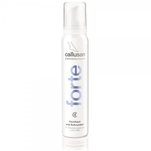 Callusan Cremeschaum – Die besondere Hautpflege für gesunde Füße Hilft bei Hornhaut und Schrunden. Mit Urea, Avocado-Öl und Shea-Butter. Inhalt: 125 ml Callusan ist eine Serie von Hautpflegeprodukten, die speziell für die Fußpflege entwickelt wurde. Die Cremeschäume verzichten bewusst auf eine fettreiche Salbengrundlage. Die Poren bleiben frei, die Haut kann ungehindert atmen. Die Cremeschäume ziehen rasch in die Haut ein und hinterlassen keinen unangenehmen Fettfilm. Die Hautverträglichkeit ist dermatologisch getestet. Inhaltsstoffe: Aqua, Urea, Isobutane, Glycerin, C12-13 Alkyl Lactate, C12-15 Alkyl Benzoate, Cetearyl Alcohol, Sorbitol, Persea Gratissima Oil, Cetearyl Glucoside, Hexyldecanol, Hexyldecyl Laurate, Stearic Acid, Sodium Lauroyl Sacrcosinate, Propane, Butane, Hydroxyethyl, Acrylate, Sodium Acryloyldimethyl Taurate Copolymer, Squalane, Polysorbate 60, Butyrospermum Parkii Butter. Lieferumfang: 1×125 ml