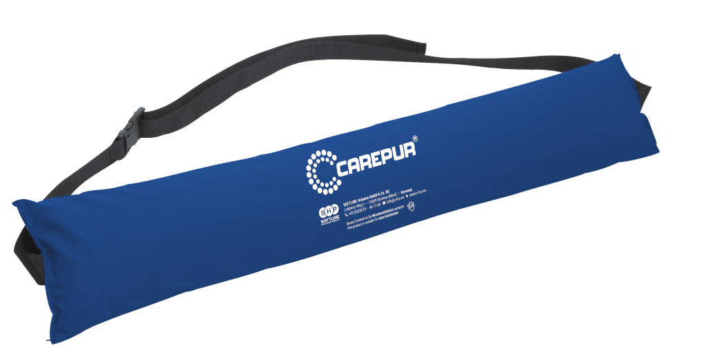 CAREPUR Fersenentlastungsgurt Lagerungshilfe Lagerungskissen zur Fersenentlastung und Spitzfußprophylaxe mehrere Einsatzmöglichkeiten möglich Die Fersenentlastung wird mit einem Gurt dauerhaft an der Matratze befestigt und somit gegen Verrutschen gesichert mit PU-Bezug Der Fersenentlastungsgurt, am Fußteil des Pflegebettes befestigt, dient der Spitzfußprophylaxe Die Vorteile des CAREPUR Fersenentlastungsgurt Der Entlastungsgurt wird auf der Matratze mittels eines einstellbaren Gurtes fixiert und dient so der Fersenentlastung in der Rückenlage Krankenkassen Hilfsmittelnummer HMV 11.11.05.0012 Zudem ist er zur Spitzfußprophylaxe verwendbar Fersenentlastungsgurt XL in der Rückenlagerung, auch möglich für Seitenlagerung Der Fersenentlastungsgurt kann unter der Matratze fixiert und somit gegen Verrutschen gesichert werden und dient zur Druckentlastung im Bereich der Fersen durch Freilagerung. • Indikation Zur Prophylaxe, Therapieunterstützung und Linderung von Dekubitalgeschwüren im Bereich der Fersen ist der CAREPUR Fersenentlastungsgurt indiziert. • Wirkung | Verwendungszweck | Anwendung Der CAREPUR Fersenentlastungsgurt wirkt nach dem Weichlagerungs- bzw. Freilagerungsprinzip. Er dient in der Rückenlage des Patienten/Bewohners der wirksamen Druckentlastung im Bereich der Fersen durch Freilagerung und wird mittels eines einstellbaren Gurtes direkt an der Matratze fixiert, was ein Verrutschen sicher verhindert. Die Hohlfaserfüllung des Kissens bewirkt die Weichlagerung des Bereiches oberhalb der Fersen und verteilt den Auflagedruck auf eine größere Fläche. Der Fersenentlastungsgurt ist auch zur Unterstützung bei der Spitzfußprophylaxe anwendbar. Dazu wird der Gurt am Fußbrett des Bettes befestigt, um dort den Fuß zu polstern und sicher zu positionieren Positionierungs-Ratgeber (ca. 2,5 MB) Bitte lesen Sie vor Gebrauch dieses CAREPUR Fersenentlastungsgurt aufmerksam die Bedienungsanleitung und halten Sie sich an die Anweisungen des Herstellers. Änderungen vorbehalten. Abbildungen können vom Original abweichen.