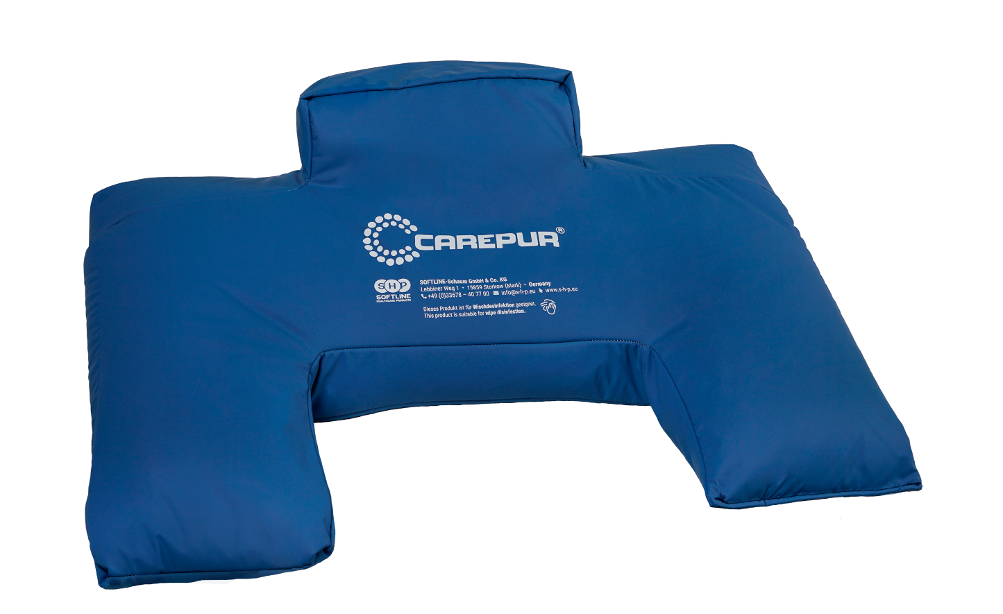 CAREPUR Semi-Fowler-Kissen M blau, 65 x 50 x 15 cm multifunktionales Lagerungskissen vielfache Einsatzmöglichkeiten sorgt für Halt und Komfort mit PU-Bezug HMV 11.11.05.1015 Die Vorteile des CAREPUR Semi-Fowler Kissen Lagerungshilfe Das Semi-Fowlerkissen wurde speziell für Menschen mit Knie- und/oder Hüftkontrakturen konzipiert Das Kissen wird unter die Unterschenkel gelegt und der Abduktionskeil zwischen den Beinen platziert Das Semi-Fowler Kissen kann einzeln zur Lagerung der Waden genutzt werden Durch seine Anpassungsfähigkeit sorgt es für einen besonderen Halt und Komfort des Patienten in der Rückenlage Das Semi-Fowler Kissen verhindert wirksam die Überstreckung des Kopfes und verbessert die Eigenwahrnehmung des Patienten Der Unterschenkel wird perfekt geführt und die Ferse liegt frei, sodass eine unerwünschte Druckbelastung nicht auftreten kann Das CAREPUR Semi-Fowler-Kissen ist ein u-förmiges Kissen mit einem erhöhten Mittelteil, das multifunktional zur Lagerung verschiedener Körperbereiche Anwendung findet.Die hauptsächliche Anwendung des CAREPUR Semi-Fowler-Kissens erfolgt in der Rückenlage des Patienten/Bewohners durch Unterfütterung von Kopf und Schultern, wobei der erhöhte Mittelteil des Kissens den Kopf sicher positioniert und die seitlichen Ausleger des u-förmigen Kissens die Schulterblätter wirksam druckentlasten. Diese komfortable Liegeposition verhindert eine Überstreckung des Kopfes und verbessert die Eigenwahrnehmung. Des Weiteren kann die Positionierungshilfe in der Rückenlage des Anwenders durch Platzierung der Kissenbasis unterhalb der Knien und der seitlichen Ausleger unter den Oberschenkeln angewendet werden. Dabei gewährleistet der erhöhte Mittelteil eine Abduktion im Kniebereich. Aus der beschriebenen Anwendung heraus, kann das Kissen auch um 180 ° gedreht werden, so dass die Unterfütterung der Knie bestehen bleibt, die Unterschenkel geführt sowie die Fersen freigelagert werden. Eine weitere Einsatzmöglichkeit besteht in der Anwendung des Kissens in einem Rollstuhl. Dabei wird die Kissenbasis mit der eigentlichen Auflagefläche auf den Oberschenkeln des Patienten/Bewohners platziert, so dass der erhöhte Mittelteil eine Abduktion der Knie erzeugt und sich eine gerade Auflagefläche zur Führung und Stabilisierung der Unterarme ergibt. Die Seitenarme des Kissens liegen am Rumpf des Anwenders an und unterstützen bei der Stabilisierung der Sitzposition. Semi-Fowler-Kissen M Rückenlagerung / Kopflagerung Das Semi-Fowler-Kissen verhindert wirksam die Überstreckung des Kopfes, und verbessert die Eigenwahrnehmung des zu Pflegenden. Semi-Fowler-Kissen M Rückenlagerung/Oberschenkel Das Semi-Fowler-Kissen im Bereich der Oberschenkel und Knie eingesetzt, unterfüttert diese und gewährleistet eine Abduktion im Kniebereich. Semi-Fowler-Kissen M im Rollstuhl Das Semi-Fowler-Kissen ermöglicht ebenfalls die sichere und druckentlastende Positionierung eines Armes und gewährleistet gleichzeitig eine Abduktion im Kniebereich zur Reduzierung des Druckrisikos durch aneinanderliegende Knieinnenseiten Allgemeine Indikation CAREPUR-Lagerungskissen sind Medizinprodukte der Klasse I. Sie sind als statische Positionierungshilfen für Leib, Rumpf und Extremitäten sowohl für die Dekubitusprophylaxe als auch für die Dekubitustherapieunterstützung geeignet. Sie wirken nach dem Weichlagerungs-, Umlagerungs-bzw. Freilagerungsprinzip und unterstützen je nach Kissentyp bei der Lagerung und Positionierung besonders gefährdeter Körperteile bzw. Körperregionen. Die Produkte können eine manuelle Lagerung des Patienten nicht ersetzen, aber gegebenenfalls das Lagerungsintervall verlängern bzw. die korrekte Lagerung und Positionierung erst ermöglichen. Spezielle Indikation | Merkmale Das CAREPUR Semi-Fowler-Kissen ermöglicht aufgrund seiner spezifischen Form besonderen Halt und Komfort des Patienten in Rückenlage. Es hebt den Oberkörper leicht an, verhindert wirksam eine Überstreckung des Kopfes und verbessert die Eigenwahrnehmung des Patienten. Eine weitere Indikation besteht in der Verwendung unter Hüfte und Oberschenkeln, da diese Bereiche gut druckentlastet und somit optimal gelagert werden. Auch die sanfte und körpergerechte Lagerung der Knie und Unterschenkel ist durch die Möglichkeit der Verwendung des Semi-Fowler-Kissens als Abduktionshilfe, bei gleichzeitiger Freilagerung der Fersen, möglich. Eine weitere Einsatzmöglichkeit besteht in der Anwendung des Kissens in einem Rollstuhl. Dabei wird das Kissen mit der eigentlichen Auflagefläche auf den Oberschenkeln des Patienten platziert, so dass die erhöhte Wulst eine Abduktion der Knie erzeugt und sich eine gerade Auflagefläche zur Führung und Stabilisierung im Bereich der Unterarme ergibt. Anwendungsbereich | Funktion Die CAREPUR-Lagerungskissen sind für den Einsatz in Krankenhäusern, Alten-und Pflegeheimen sowie im häuslichen Bereich geeignet und dienen der Verbesserung der Positionierung im Standardbett, Pflegebett bzw. im Rollstuhl und zur Unterstützung bei der Durchführung spezifischer Lagerungsformen zur Prophylaxe und Therapie von Dekubitalgeschwüren. Durch das leichte Einsinken des Patienten in die Kissenstruktur kann sich der Auflagedruck auf eine wesentlich größere Fläche verteilen, wodurch eine scherkraftreduzierende Wirkung und die gleichzeitige Verbesserung der Blutzirkulation der angrenzenden Gewebeareale erreicht werden. Die Kissen sind geeignet zur Verwendung in Betten mit ebener oder verstellbarer Liegefläche und für den Einsatz in trockenen Räumen. Hinweis: Für den Betreiber/Anwender von Medizinprodukten ist die Medizinprodukte-Betreiber-Verordnung (MPBetreibV) verbindlich. Der Anwender muss die entsprechende Sachkenntnis besitzen, um die Eignung des Produktes zu prüfen und das bestehende Dekubitusrisiko sowie vorhandene Dekubitalulzerationen beurteilen zu können. Anwendungsrisiken | Kontraindikation Erfolgt die Verwendung der CAREPUR-Lagerungskissen in Betten 