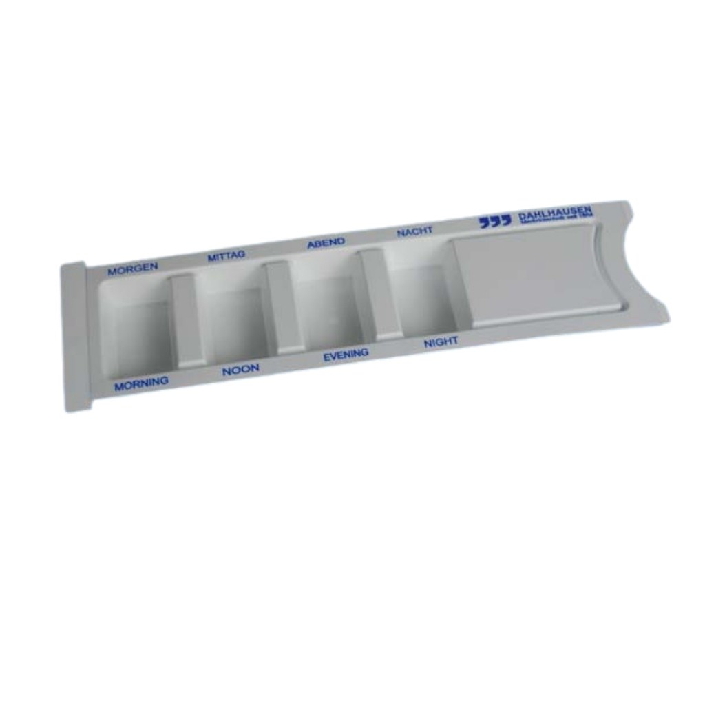 Dahlhausen Medikamenten-Dispenser schmal mit durchgehendem Schiebedeckel mit Einteilung: Morgen/Mittag/Abend/Nacht passend zum Dahlhausen-Medikamenten-Dispenser-Tablett Farbe: weiß B x H x T: 60 x 15 x 223 mm Bitte lesen Sie vor Gebrauch dieses Dahlhausen Medikamenten-Dispenser aufmerksam die Bedienungsanleitung und halten Sie sich an die Anweisungen des Herstellers. Änderungen vorbehalten. Abbildungen können vom Original abweichen.