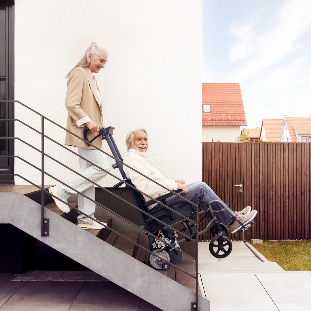 Der neue Treppensteiger Scalamobil S45 von Alber ist da! Exklusiv-Vorstellung auf der Rehacare Messe. Demnächst im Rollstuhlzentrum Koblenz. Artikel mit individueller Beratung und Bestellungfür unsere regionalen Kunden (Koblenz +100km) So funktioniert es: Kontaktieren Sie uns bevorzugt per E-Mail oder Kontaktformular und teilen Sie uns Ihre Kontaktdaten sowie Ihre Anschrift mit. Unser Experte für den entsprechenden Fachbereich wird sich zeitnah bei Ihnen melden, um einen Beratungstermin zu vereinbaren. Nach der persönlichen Beratung erstellen wir ein maßgeschneidertes Angebot für Sie und bestellen das passende Produkt. Dieser exklusive Service gewährleistet, dass Sie das Produkt erhalten, das perfekt zu Ihnen passt. Wir freuen uns darauf, Sie persönlich zu unterstützen Alber aktualisiert seine Treppensteiger-Serie: S45 ersetzt S35. Neue innovative Techniken erwarten Sie. Einfach und sicher Treppen überwinden – bewährte Technologie für mehr Unabhängigkeit Treppen können zu einer echten Herausforderung werden, wenn eine Krankheit oder Behinderung das selbständige Treppensteigen unmöglich macht. Sei es zu Hause, beim Arzt, in öffentlichen Gebäuden oder bei Besuchen von Freunden und Familie – jede Stufe kann ein unüberwindbares Hindernis darstellen. Mit den mobilen, elektrischen Treppensteigern von Alber werden Barrieren einfach überwunden und Wege zugänglich gemacht. So funktioniert es: Zwei elektrisch angetriebene Radpaare überwinden jede Treppenstufe – sowohl nach oben als auch nach unten. Ein sanfter und zuverlässiger Steigmechanismus, der von Alber patentiert wurde, sorgt für eine sichere Fortbewegung. Beim Abstieg stoppen vier Sicherheitsbremsen das Scalamobil automatisch vor jeder Stufenkante. Die Begleitperson wählt die Richtung und Geschwindigkeit, während sie den Treppensteiger lediglich in Balance hält. Der leistungsstarke Elektromotor übernimmt auf Knopfdruck die gesamte Steigarbeit. Für Transport einfach zerlegbar Komplett Sorglos Paket Alber Scalamobil S45 – inkl. Ergogriffe – inkl. Halterung für Rollstuhl – inkl. Akku + Ladegerät Invacare Action3NG Aluminium Leichtgewichtsrollstuhl – inkl. Trommelbremse für Begleitperson – inkl. Sitzkissen