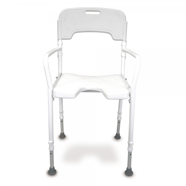Der Duschstuhl DSF 130 ist faltbar und gibt Sicherheit im Bad. Mit nur einem Handgriff ist er schnell und einfach faltbar und lässt sich optimal verstauen, wenn er nicht in Gebrauch ist. Egal für welche Größe – dieser Duschstuhl ist durch seine 4-fach höhenverstellbaren Beine für alle leicht einstellbar Hygieneaussparung erleichtert die Intimpflege Wasserablauflöcher in der Sitzfläche sorgen für Ihren Komfort und Ihre Sicherheit Der Duschstuhl lässt sich leicht reinigen Der Rahmen aus pulverbeschichtetem Stahlrohr ist rostfrei Technische Daten: Gesamtbreite: 510 mm Gesamthöhe: 960-1040 mm Sitztiefe: 430 mm Gesamttiefe: 450 mm Sitzhöhe: 450-530 mm Max. Belastung: 130 kg Gewicht: 6,8 kg Material Sitzplatte: PE-HD