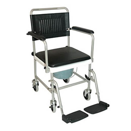 Drive Transport-Toilettenrollstuhl, HMV, bis 130 kg belastbar, Toilettenstuhl Komplettset, Sitzbrille + Sitzpolster, Eimer + Deckel, Beinstützen abschwenkbar