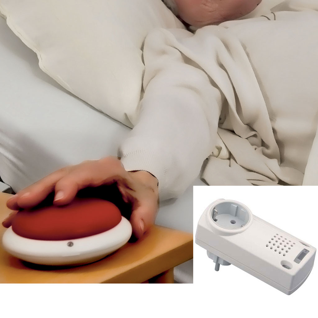 Eldat Funk-Pflegeruf mit Großruftaste Steckdosenempfänger, bis 150m, optische, akustische Signalgebung Empfänger Bedienungsanleitung Die Ruftonlänge kann zwischen 7 Sekunden und 1 Minute frei gewählt werden. Großruftaste Maße ca. 12 cm Durchmesser (untertellergroß) Die Vorteile des Eldat Funk-Pflegeruf mit Großruftaste Einfach den Steckdosen-Funkgong in eine Steckdose stecken und schon ist der Pflegeruf einsetzbar. Kein Verlegen von Leitungen nötig und bei einer Reichweite von 150 m – auf freiem Feld gemessen – hören Sie das Signal auch noch im Keller oder auf der Terrasse. Es stehen Ihnen 3 verschiedene Melodien als Rufton zur Auswahl, jeweils in 2 Lautstärken und wahlweise kombinierbar mit der optischen Rufanzeige durch Flash-LED. Das Set aus Empfänger und Sender ist erweiterbar, z. B. wenn Sie in mehreren Zimmern einen Empfänger installieren möchten. Diese Großruftaste können auch Menschen mit eingschränkter Motorik noch zuverlässig bedienen, da es eine hohe Empfindlichkeit besitzt. sehr leicht zu betätigen kann besonders leicht aufgefunden werden robust für den alltäglichen Einsatz konzipiert Servicebereich Bedienungsanleitung Bitte beachten Sie vor Gebrauch des Eldat Funk-Pflegeruf mit Großruftaste aufmerksam die Anweisungen des Herstellers. Änderungen vorbehalten. Abbildungen können vom Original abweichen.