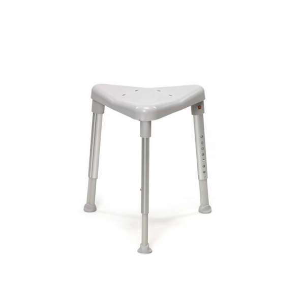Duschhocker einmal anders: DreieckformDurch die dreieckige Form des Edge Duschhockers nimmt er nur sehr wenig Platz in Anspruch und ermöglicht dem Nutzer ein leichteres Aufstehen. Der dreibeinige Duschhocker aus der Swift-Familie ist höhenverstellbar und ermöglicht Sitzhöhen von 42 – 57 cm.Die einzelnen, in der Höhe verstellbaren Beine gewährleisten zudem sicheren Stand. Seine speziellen Gummifüße gleichen auch auf stark unebenen Böden Höhenunterschiede sicher aus.Im montierten Zustand ist der Edge auch stapelbar. Die die Montage und Sitzhöheneinstellung werden keine Werkzeuge benötigt.Edge ist wegen seiner Konstruktion mit Schnellverschlüssen ohne Werkzeug rasch und leicht zu montieren.TeleskopbeineDie einzelnen, in der Höhe verstellbaren Teleskopbeine gewährleisten eine optimale Sitzhöheneinstellung von 42 bis 57 cm sowie sicheren Stand durch die Möglichkeit Unebenheiten auszugleichen.GummifüßeSpezielle Gummifüße unterstützen die Standsicherheit enorm. Sie verhindern ein gefährliches Verrutschen beim Hinsetzen.Edge vereint Einfachheit und Funktionalität. Edge ist äußerst einfach in der Handhabung und von geringem Gewicht. Die dreibeinige Konstruktionsweise macht ihn trotzdem außerordentlich stabil.Reinigung:Lösungsmittelfreies Reinigungsmittel mit einem PH-Wert von 6-9 oder mit einer 70%-igen Desinfektionslösung.Dekontamination bei max. 85°CTechnische Daten:Sitzbreite: 45 cmGesamtbreite: 52 cmGewicht: 2,6 kgSitzhöhe (min. – max.): 42-57 cmMaterial: Polypropylen und AluminiumMax. Belastbarkeit: 130 kgFarbe: grau oder eisblauLieferumfang:1 Stück Etac Duschhocker Edge