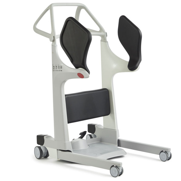 Die Etac Molift Transfer Pro ist eine Aufstehhilfe für den Transfer im Sitzen. Wichtig ist, dass der Nutzer eine gute Rumpfstabilität hat und ausreichend Kraft hat, um sein eigenes Körpergewicht hochziehen zu können. Die Zentralbremse bietet sowohl eine akustische als auch eine visuelle Rückmeldung und blockiert beide Räder gleichzeitig.Erhöhter Komfort und Sicherheit durch innovatives DesignErgonomischer GriffSitzpolster für einen bequemen und sicheren TransferWeich gepolsterte BeinstützeNiedrige EinstiegshöheHochwertigen Räder sorgen für ein leichtes ManövrierenMaße:Nutzerhöhe: 149 – 200 cmGesamtgewicht: 28,2 kgMax. Nutzergewicht: 200 kgHöhe: 117,9 cmLänge: 92,0 cmBreite: 66,9 cmHöhe der Fußplatte: 5,6 cmWenderadius mit offenen geschlossenen Beinen: 103 114,6 cmMaterial:Pulverbeschichtetes AluminiumKunststoffStahlPolyuretanschaumPflege:Reinigen desinfizieren Sie das Produkt mit einem handelsüblichen, nicht scheuernden Reinigungsmittel mit einem pH-Wert zwischen 5 und 9 oder mit einer 70%igen DesinfektionslösungLieferumfang:1 Stück Etac Molift Transfer Pro Transferhilfe