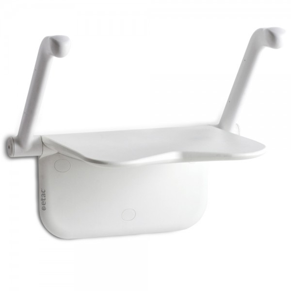 Zeit zum Entspannen – mit dem Etac Relax Duschklappsitz Wer Schwierigkeiten beim Duschen im Stehen hat, wird mit dem Duschklappsitz optimal unterstützt werden. Er passt super in große und kleine Duschkabinen und bietet in verschiedenen Varianten ausreichend Komfort. Nach dem Duschen kann er bequem hochgeklappt werden, sodass er bei Nichtgebrauch nicht stört. Hierbei handelt es sich um den Duschklappsitz mit Armlehnen. Kompakte Bauweise Geringe Abmessungen, aber komfortable Sitzfläche Design, Funktionalität und Sicherheit Weicher, ergonomischer Sitz Nur drei Befestigungsschrauben Zubehör, wie Rückenlehne und Stützbeine, nachmontierbar Klare, abgerundete Oberflächen Einzigartige Armlehnen mit Softgrip: Ergonomisch geformt Mit weicher, rutschfester Oberfläche Maße: Breite: 53 cm Tiefe hochgeklappt heruntergeklappt: 8 cm 45 cm Max. Belastbarkeit: 125 kg Farbe: weiß Reinigung: Kann mit handelsüblichen Reinigungsmitteln (keine Scheuermilch!) gereinigt werden Kann drei Minuten bei 85° gereinigt werden Lieferumfang: 1 Stück Etac Relax Duschklappsitz mit ArmlehnenOhne Schrauben!