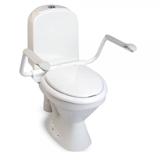 Der Etac Supporter kommt zum Einsatz, wenn ein Abstützen beim Toilettengang erforderlich ist. Er kann einfach gegen die normale Toilettenbrille mit Deckel ausgetauscht werden. hochschwenkbare gepolsterte Armlehnen Montage möglich bei Lochabständen von 9,5 bis 30,5 cm Reinigung: Lösungsmittelfreies Reinigungsmittel mit einem PH-Wert von 6-9 oder mit einer 70%tigen Desinfektionslösung Dekontamination bei max. 85°C Farbe: weiß (unter den Armlehnen grau) Maße: Außenmaß: 60 cm Breite zwischen den Armlehnen: 49 cm Höhe der Armlehnen: 25 cm Gewicht: 5,0 kg Belastbarkeit: bis 130 kg Material: Gestell und Armlehnen: Pulverbeschichtetes Stahlrohr Armlehnenauflagen: Polypropylen Deckel und Sitzbrille: Hartkunststoff Befestigung: Aluminium Lieferumfang: 1x Sitzbrille, Deckel und Armlehnen