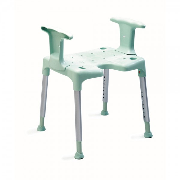 Der Duschstuhl Etac Swift mit Armlehnen ist die einfache und praktische Variante des Etac Swift Toilettenstuhls. Verstellbare Sitzhöhe durch Teleskopbeine Durch zwei eingearbeitete Griffe und das geringe Gewicht leicht zu transportieren Spezielle Gummifüße geben selbst auf unebenen Böden sicheren Halt Einfache Montage, ohne Werkzeug Angeraute Struktur auf der Sitzfläche Technische Daten: Sitzhöhe: 44 – 59 cm Sitzfläche: 54 x 41 cm Gesamtbreite: 53 – 54 cm Breite zwischen den Armlehnen: 45 cm Tiefe: 47 50 cm Gewicht: 4,7 kg Belastbarkeit bis 130 kg Material: Polypropylen und Aluminium Farben: eisblau grau lagoongrün weiß Lieferumfang: 1 Duschstuhl Etac Swift mit Armlehnen in der gewählten Farbe