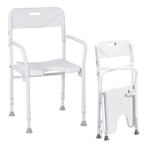 Faltbarer Duschstuhl, mit Armlehnen und Rückenlehne, Aluminium, bis 120kg belastbar