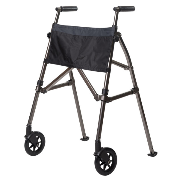 Der Foldy Walker ist ein solides Gehgestell, das extrem schmal gefaltet werden kann und demnach ideal für den Transport geeignet ist.Hohe Stabilität für einen sicheren Gang6-fach höhenverstellbare GriffeAuf kleinstes Maß faltbarGroße, schwenkbare Rollen für einfaches ManövrierenGroßzügige Tasche mit 2 FächernTechnische Daten:Gewicht: 3,2 kgGriffhöhe: 83 – 99 cmHöhe gefaltet: 91 cmGesamtbreite: 65 cmBreite gefaltet: 14 cmGesamttiefe: 54 cmTiefe gefaltet: 21 cmBreite zwischen den Griffen: 41,5 cmMax. Belastbarkeit: 120 kgMaterial:Aluminium, KunststoffRollen:kugelgelagert, 6 ZollFarben:walnusskobaltblaurosaLieferumfang:1 Stück FOLDY Walker Gehgestell in gewählter FarbeInkl. Tasche