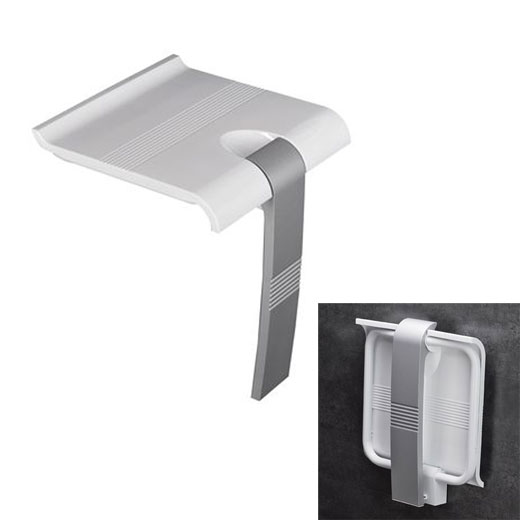 FRELU Duschklappsitz Duschsitz mit ausklappbarer Stütze Edelstahl, Fallsicherung, bis 150 kg belastbar