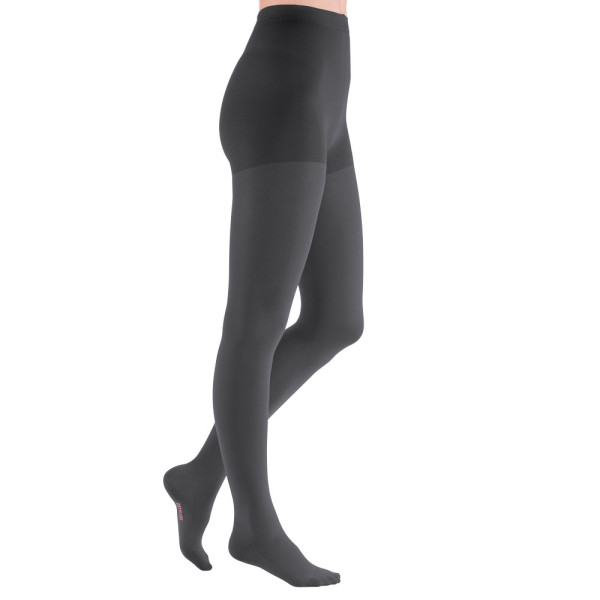 Die mediven comfort Strumpfhose ist besonders weich und angenehm auf der Haut zu tragen.Hautpflegende und schützende Eigenschaften dank Lanolin (natürliche Substanz zur Behandlung von trockener und rauer Haut, bleibt auch nach 100 Wäschen erhalten)Doppelt gestrickte Komfortsohle für ein noch angenehmeres LaufgefühlAnschmiegsamer, elastischer und strapazierfähiger Komfortzwickel für optimalen SitzKompressionsklasse II: Kompression in mmHg: 23,0 – 32,0, Kompression in kPa: 3,10 – 4,30Geschlossene Fußspitze Mit Clima Comfort und Clima FreshAttraktive Haftbänder für sicheren Halt und hohen TragekomfortLänge:normal: 72 – 83 cmGrößen (Fesselumfang):18-20 cm = I20-22 cm = II22-24 cm = III24-26 cm = IV26-28 cm = V28-30 cm = VI30-32 cm = VIIFarbe:schwarzanthrazitcaramelbeigerosébronzecashmeremarineMaterial:35% Elastan65% PolyamidIndikationen:VarikosePrimäre und sekundäre VarikoseVarizen in der SchwangerschaftDie Sklerosierungstherapie unterstützendNach venenchirurgischen Eingriffen Chronische Veneninsuffizienz (CVI) der Stadien I und II nach Widmer bzw. C1 bis C4 nach CEAPThromboseprophylaxe bei mobilen PatientenThrombophlebitis (superfiziell) sowie Zustand nach abgeheilter PhlebitisTiefe Beinvenenthrombose, Zustand nach Thrombose, postthrombotisches SyndromLieferumfang:1 Stück mediven comfort CCL2 AT Strumpfhose