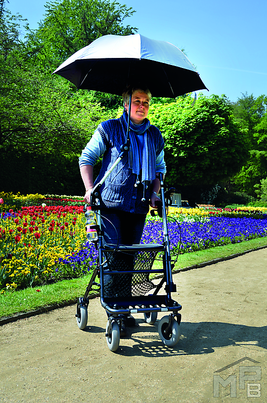 MPB Rollatorschirm komplett mit Halterung Modell 3 Blau refletierender Rand