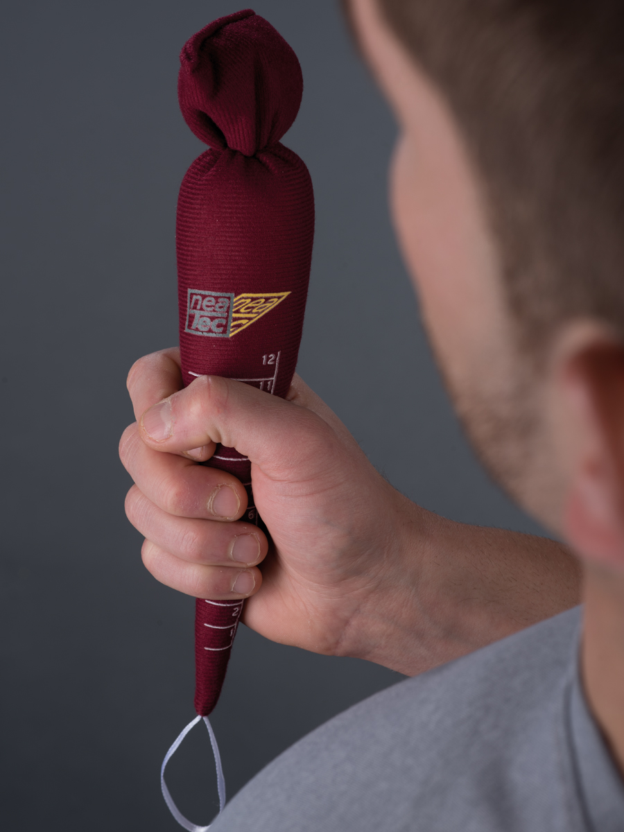 NeaKarot Fingerquengelorthese Die optimale Möglichkeit zur Versorgung von starken Fingerbeugekontrakturen Die NeaKarot wurde entwickelt zur Behandlung von starken Beugekontrakturen der Hand. Durch das Dehnen der Finger wird der Druck auf die Handinnenfläche verringert, die Innenhand wird vor Verletzungen durch die Fingernägel geschützt und ein Feuchtigkeitsstau verhindert. Dieser mit Polyethylengranulat gefüllte Kegel wird zur Dehnung der Finger in die Hand eingeführt. Die Muskulatur kann sich entspannen und notwendige Hygienemaßnahmen können leichter durchgeführt werden. Der Bezug ist oben weich abgenäht und besteht aus einem Baumwollgewebe, das mit Silber durchsetzt ist. Damit wirkt die Orthese bakteriostatisch was bedeutet, dass sich Keime nicht weiter vermehren können. Maschinenwaschbar bei 30° C. Indikationen Starke, nicht fixierte Beugekontrakturen der Finger