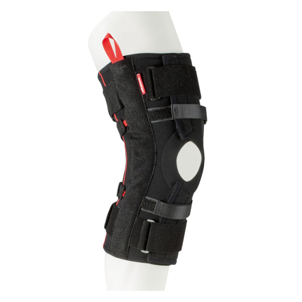 Die Otto Bock Genu Direxa Stable Knieorthese hat breite Aluminiumschienen und einstellbare polyzentrische Gelenke für eine stufenweise Extensions- und Flexionsbegrenzung, um die die neuromuskuläre Funktion zu verbessern.Offene KonstruktionDosierte KompressionClick-2-Go SystemInnovatives TriTech Material ist atmungsaktiv und sorgt für hohen Tragekomfort Vier unelastische, zirkulär umlaufende Gurte Abgedeckte Gelenkschienen ermöglichen KontaktsportartenEntlastet, stabilisiert und sichert das KniegelenkSchützt vor Hyperextension im KniegelenkVerbessert die Propriozeption und unterstützt die SensomotorikFördert die Resorption von Ödemen und HämatomenKann Schmerzen lindernIndikationen:Knieschmerz mit schweren oder komplexen BandlaxitätenKreuzbandriss (Ruptur) -rekonstruktion (ACL und oder PCL)Präoperative oder chronische Instabilität des vorderen hinteren Kreuzbandes (ACL PCL)SeitenbandverletzungGelenkverschleiß des Kniegelenks (Gonarthrose)Rheumatoide ArthritisFarbe:schwarzGröße:Unterschenkelumfang (15 cm unter Knie)Oberschenkelumfang (15 cm über Knie)Größe29 – 32 cm36 – 40 cmXXS32 – 35 cm40 – 44 cmXS35 – 38 cm44 – 48 cmS38 – 41 cm48 – 52 cmM41 – 44 cm52 – 56 cmL44 – 48 cm56 – 61 cmXL48 – 51 cm61 – 67 cmXXLlinks und rechts gleichLieferumfang:1 Stück Otto Bock Genu Direxa Stable Wraparound Knieorthese in gewählter Größe