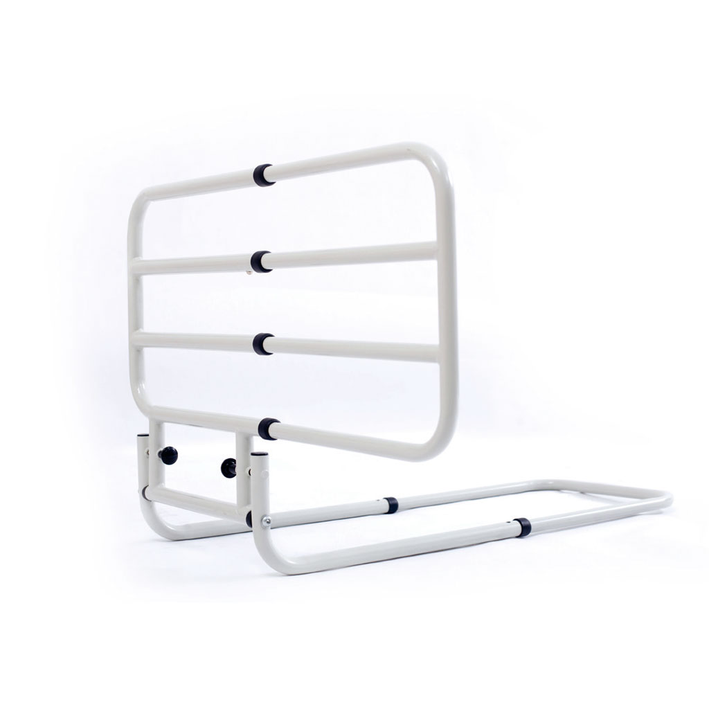 RFM Bettgeländer Ausziehbar Das Bettgeländer RFM ausziehbar ist eine praktische Hilfe für Personen, die eine Unterstützung benötigen, um ins Bett zu steigen oder, um dieses zu verlassen. Das ausziehbare Seitenteil kann je nach Bedarf und Körperlänge angepasst werden, um ein Hinausfallen zu vermeiden. Eine Befestigung am Lattenrost nachdem das Gestell des Bettgeländers der Bettbreite angepasst wurde, sorgt für einen festen Halt. Gewicht 3,5 kg Höhe 50 cm Höhe gefaltet 16 cm Länge (Seitenteil) ca. 55 – 72 cm Tiefe des Untergestells ca. 79 – 89 cm Durchmesser Rohre außen 23 mm Durchmesser Rohre innen 18,6 mm Max. Belastbarkeit (Gestell) 120 kg Max. Belastbarkeit (Seitenteil) 70 kg Material lackierter Stahl Artikelnummer 14002528