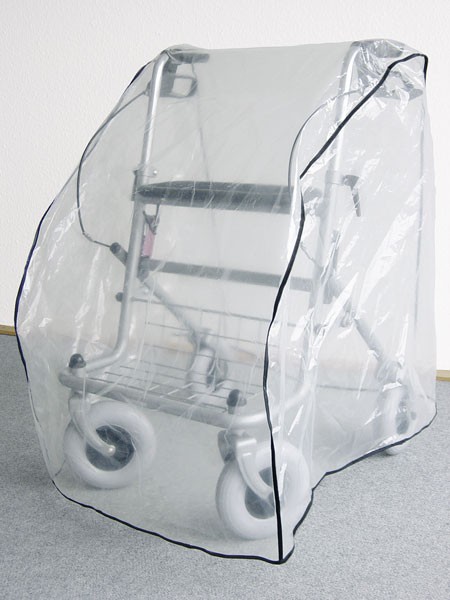 Diese praktische Schutzhaube lässt sich einfach und bequem über den Rollator ziehen und schützt ihn vor Staub und Regen. Gerade in der kalten und nassen Jahreszeit ein ideales Zubehör für Ihren Rollator. Material: transparente PE-Folie, am Rand mit schwarzem Stoffband eingefasst. Maße: ca. 60 x 80 x 83 cm (BxHxT)