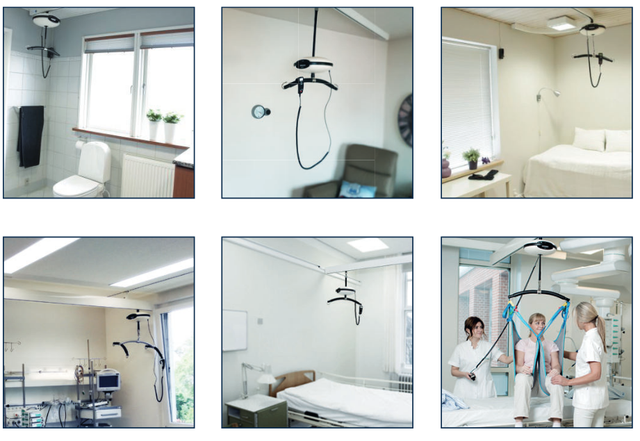 SLK Luna Stationär, Deckenliftanlage, elektrisch heben, manueller Fahrwagen, Einsatz in einem Raum, auch im Nassbereich, bis 200kg bzw. 275kg