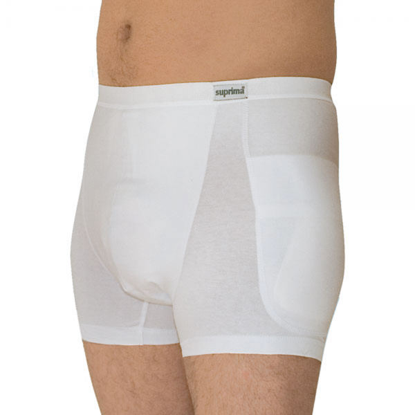 Hüftprotektor Slip “bodyguard” für Herren ohne ProtektorenDas Risiko sich bei einem Sturz eine Oberschenkelhalsfraktur zuzuziehen, wächst mit fortgeschrittenem Alter überproportional, nicht zuletzt weil der Knochenabbau (Osteoporose) eine Krankheit ist, von der überwiegend ältere Menschen betroffen sind. Sturzgefährdeten Personen wird daher empfohlen, einen Slip mit Hüftprotektoren zur Verminderung von Sturzverletzungen zu tragen.Baumwollslip mit Lycrarechts und links je eine Tasche zur Aufnahme der ProtektorenWäscheschutz aus Polyurethan (PU)  zur Verwendung von Einlagen bei InkontinenzHose wird ohne der herausnehmbaren Protektoren geliefertGrößen:S: entspricht Herrengröße 4M: entspricht Herrengröße 5L: entspricht Herrengröße 6 7XL: entspricht Herrengröße 8Material:93% Baumwolle7% ElasthanWäscheschutz: PUFarbe:weißPassende Protektoren:Suprima WeichschaumprotektorenSuprima Hüftprotektor StandardWaschempfehlung:Waschen bei 60° (ohne Protektoren)Bügeln bei niedriger Temperatur möglichTrocknen mit niedriger TemperaturChlorbleiche nicht möglich