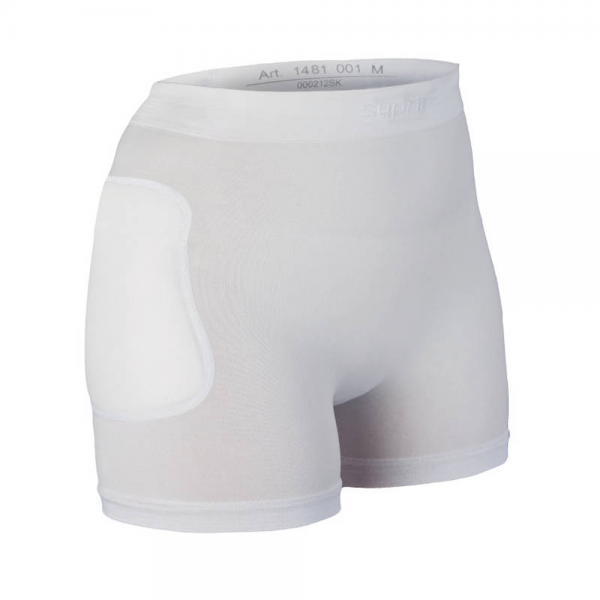 Mit dem Suprima Hüftprotektor-Slip inklusive Protektoren können Sie schweren Verletzungen bei einem Sturz effektiv vorbeugen. für Damen und Herren geeignet integrierte Protektoren aus viskoelastischem Material – wasserdicht eingeschweißt (nicht entnehmbar) besonders robustes und langlebiges Material nahtlos rundgestrickt für eine perfekte Passform gleichmäßige Kompression durch elastisches Material breiter Komfortbund für ein angenehmes Tragegefühl Pflegeetikett und Artikeldaten gut sichtbar in Bund eingestickt – damit dauerhaft gut lesbar ohne störendes Etikett Waschbar bei 60 °C, Trocknergeeignet 1 Punkt Materialzusammensetzung: 58 % Baumwolle 36 % Polyamid 6 % Elasthan Größe: (sehr dehnbar, darum XXL und XXXL zusammengefasst in einer Größe) Für Sie: S (36-38), M (40-42), L (44-46), XL (48-50), XXL-XXXL (52-60) Für Ihn: S (4), M (5), L (6), XL (7), XXL-XXXL (8-10) Farbe: weiß Lieferumfang: 1 Hüftschutz-Slip mit eingenähten Protektoren 2008