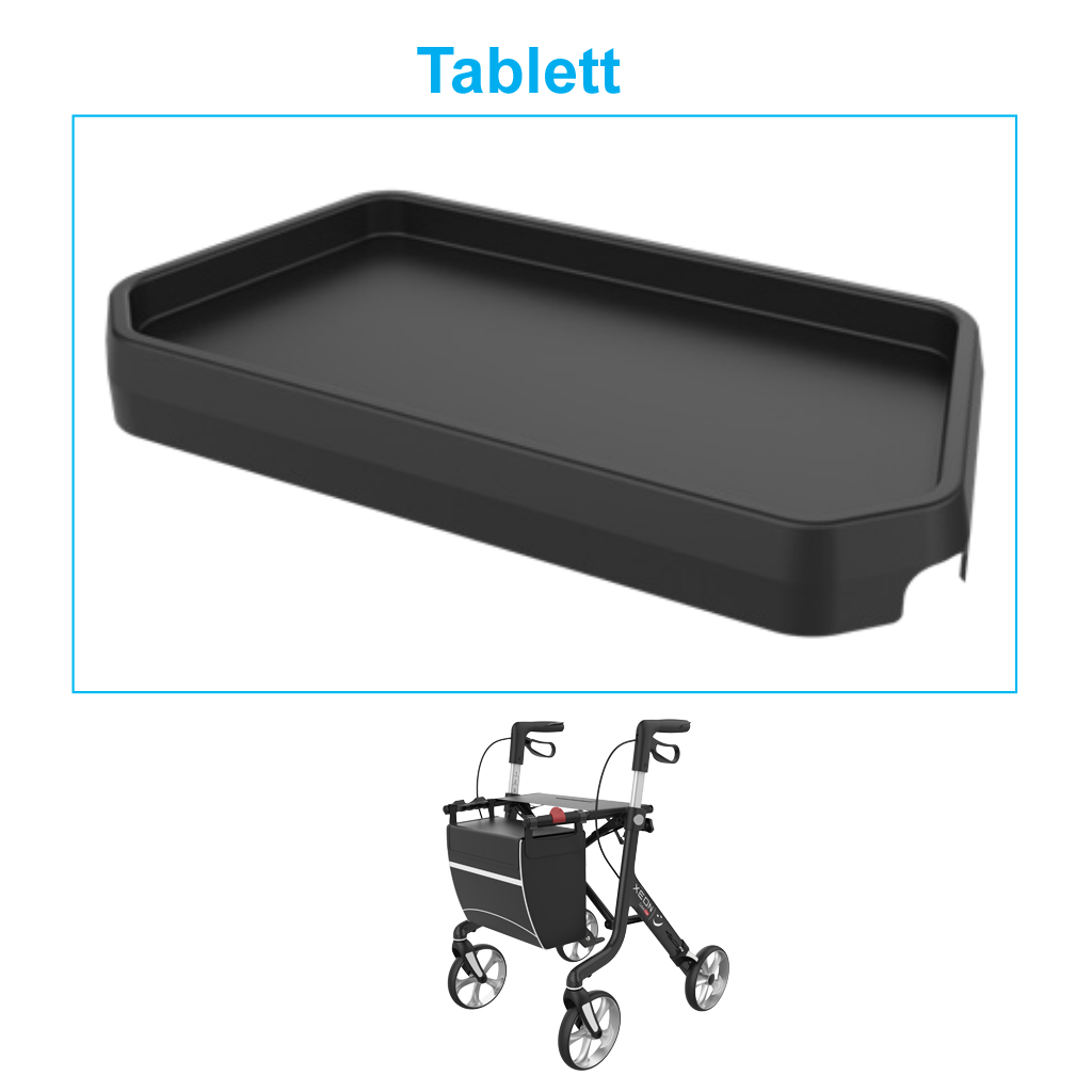 Tablett für Xeon Rollator die ideale Lösung für den sicheren Transport kleinerer Gegenstände. Das Tablett für den Xeon Rollator wurde in elegantem schwarz gehalten. Ausgestattet mit einer Anti-Rutsch-Matte sorgt es dafür, dass alles an seinem Platz bleibt, auch während der Fahrt. schwarz mit Anti-Rutsch-Matte Bitte lesen Sie vor Gebrauch von diesem Produkt aufmerksam die Bedienungsanleitung und halten Sie sich an die Anweisungen des Herstellers. Änderungen vorbehalten. Abbildungen können vom Original abweichen.