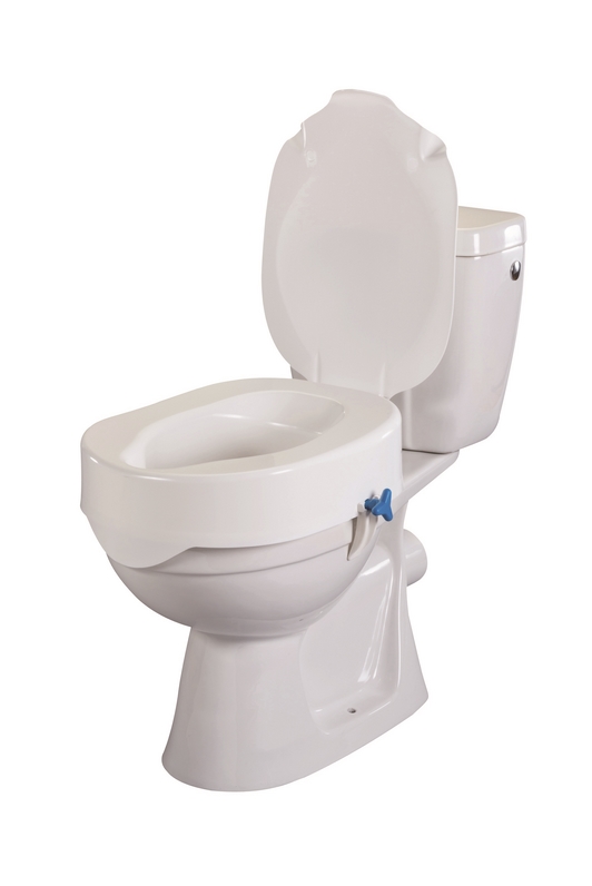 Toilettensitzerhöhung Rehotec mit Deckel, 7cm Höhe (extra niedrig), mit Halteklammern, bis 180kg