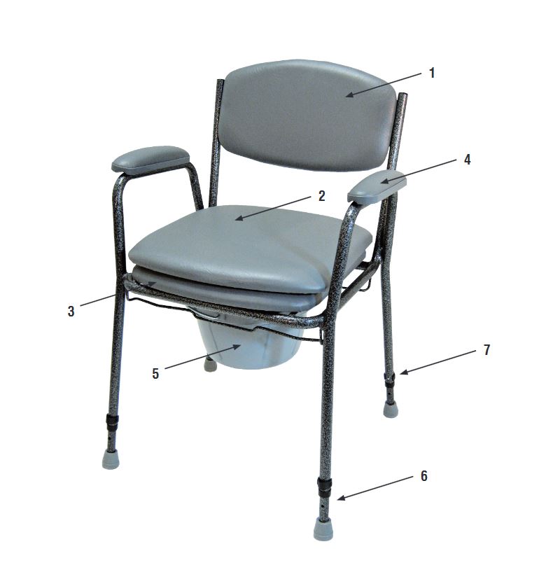 Toilettenstuhl TS 130 feststehend Der vielfach bewährte Toilettenstuhl Komfortabel, sicher und besonders stabil Große, weiche Sitzfläche und Rückenlehne für mehr Komfort Sitzbrille und Auflage hochklappbar und abnehmbar Serienmäßiger Eimer in handelsüblicher Ausführung Sechsfache Sitzhöhenverstellung durch Teleskopbeine Sicherer Stand durch Gummifüße Polsternähte unten versiegelt Gepolsterte Armauflagen Einfach zu reinigen belastbar bis 130 kg Rückenlehne Sitzfläche abnehmbar Sitzbrille Armlehne Standardeimer mit Deckel Verstellbare Füße Halteclips Bitte lesen Sie vor Gebrauch von diesem Toilettenstuhl aufmerksam die Bedienungsanleitung und halten Sie sich an die Anweisungen des Herstellers. Änderungen vorbehalten. Abbildungen können vom Original abweichen.