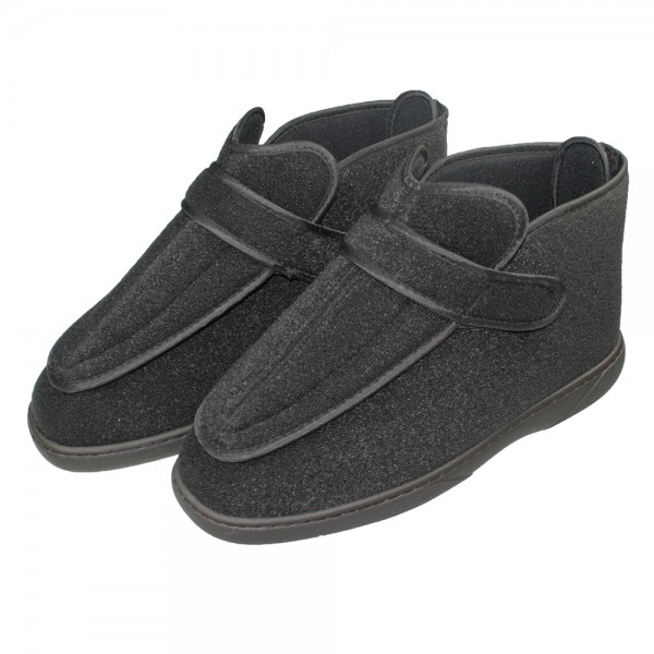 Der Werkmeister Wewa Ped Rehaschuh ist ein hoher Hausschuh mit einem weiten Einstieg und einem großzügig bemessenen und nahtlosen Innenbereich. Dadurch ist der Schuh ideal als Verbandschuh geeignet.Da er bis zu den Knöcheln geht, bietet er zusätzliche Stabilität. Breite Klettverschlüsse Rutschhemmende Sohle Geschlossene Fußspitze Indikationen: Postoperativ bei Eingriffen am Fuß und nach Fußverletzungen Wunden und Ulcerationen Starke Schwellneigung der Füße Farbe: schwarz Größen (Schuhgröße): 36-46 Lieferumfang: 1 Paar Werkmeister Wewa Ped Rehaschuhe hoch in gewählter Größe